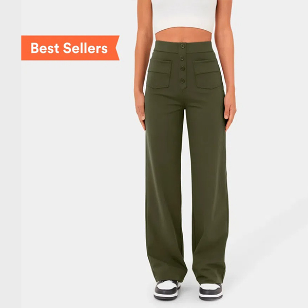 The high-waisted design provides support and style without compromising comfort. With stylish button details and straight legs, our trousers offer a flattering look that elongates the body.
